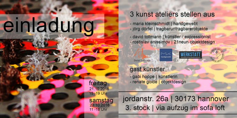 Am 21.10.2016 werden die genannten Ateliers in der 3. Etage des SofaLoft Hannover geöffnet sein.