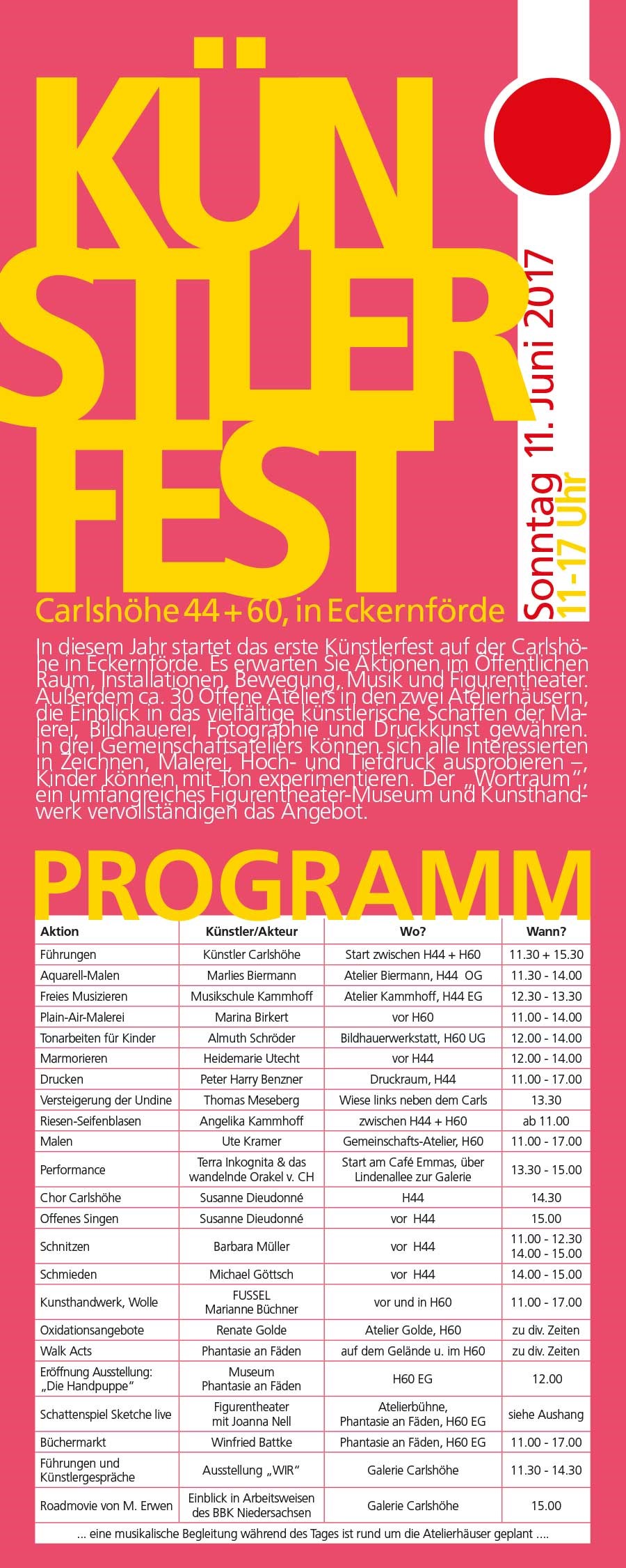 Einladung zum Künstlerfest auf der Carlshöhe am 11.06.2017